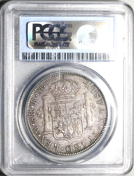 - Almost Uncirculated Mexico Colonial Spain Portrait type silver 8 reales (dollar) coin.