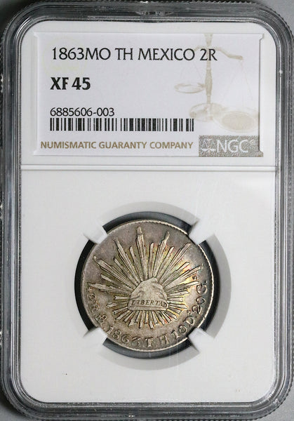 1863-Mo TH NGC XF 45 Mexico 2 Reales City Mint Silver Coin (24072803C)