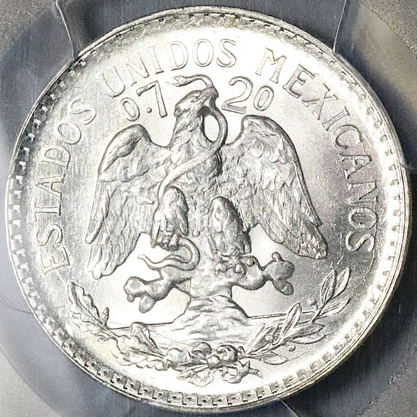 Gem Mint State Uncirculated Mexico silver 50 centavos coin.