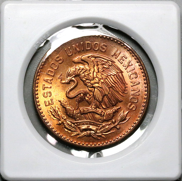 Gem Uncirculated Mexico RED bronze 50 centavos coin.