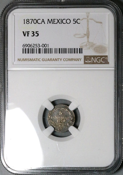1870-Ca NGC VF 35 Mexico 5 Centavos Rare Chihuahua Mint Silver Coin 35k (24111201C)
