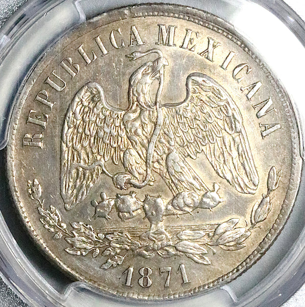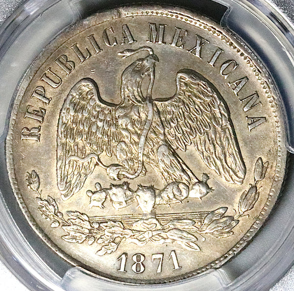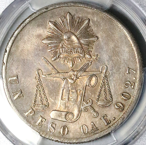 1871-Oa PCGS AU Mexico 1 Peso Oaxaca Mint Large A Silver Coin (25081603C)