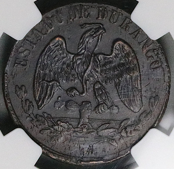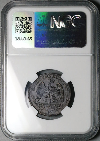 1872 NGC AU 58 Durango 1/4 Real Mexico State Quarto Quartilla Coin (25022303C)