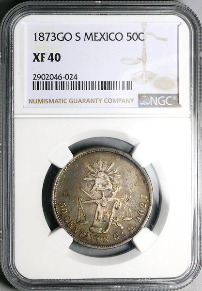 1873-Go NGC XF 40 Mexico 50 Centavos Guanajuato Rare 50k Silver Coin POP 1/1 (25060603C)