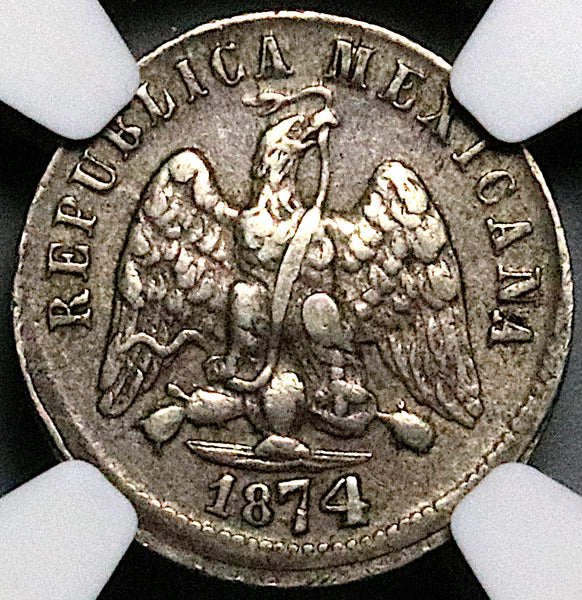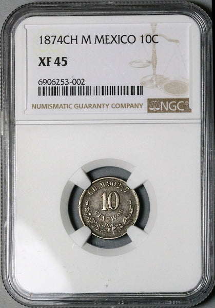 1874-CH NGC XF 45 Mexico 10 Centavos Chihuahua Mint Silver Coin (24122602C)