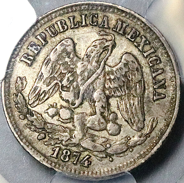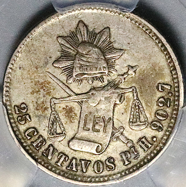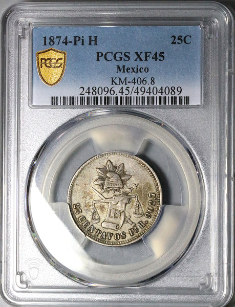 1874-Pi PCGS XF 45 Mexico 25 Centavos Potosi Mint Rare Silver Coin (24092402C)