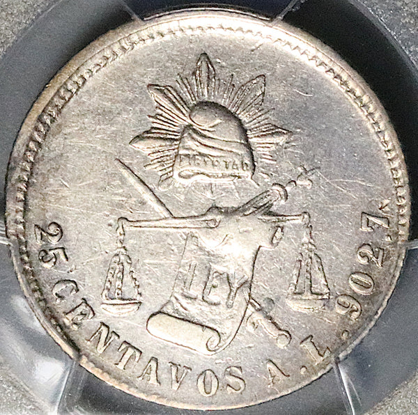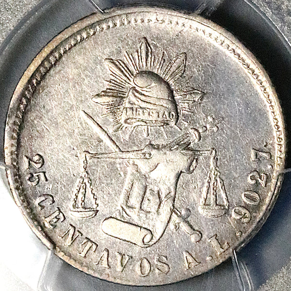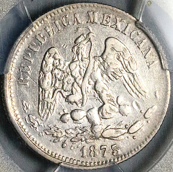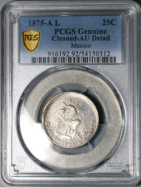 1875-A PCGS AU Mexico 25 Centavos Rare Alamos Mint Silver Coin (25123001C)