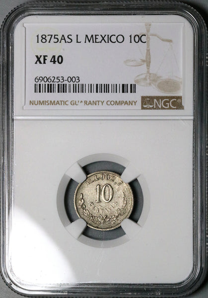 1875-As NGC XF 40 Mexico 10 Centavos Alamos Mint Silver Coin POP 3/1 (24110602C)