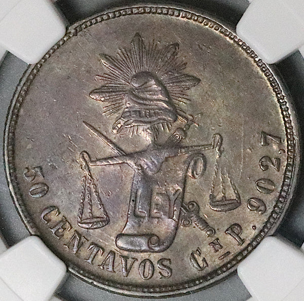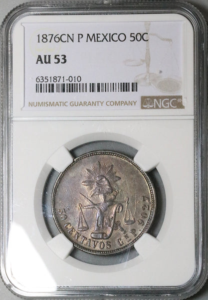 1876-Cn NGC AU 53 Mexico 50 Centavos Culiacan Mint Silver Coin POP 1/4 (23071401C)