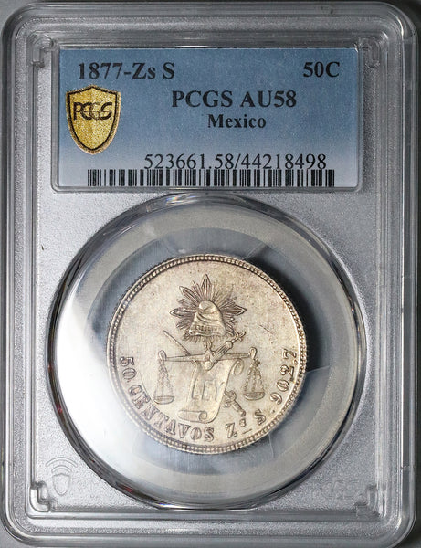 1877-Zs PCGS AU 58 Mexico 50 Centavos Zacatecas Mint Silver Coin POP 1/3 (24022001C)