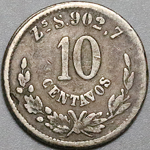 1878-Zs Mexico 10 Centavos Zacatecas Mint Rare 30k Silver Coin (24081801R)