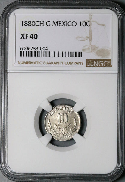1880-CH G/g NGC XF 40 Mexico 10 Centavos Chihuahua Mint Silver 8k Coin (24122603C)