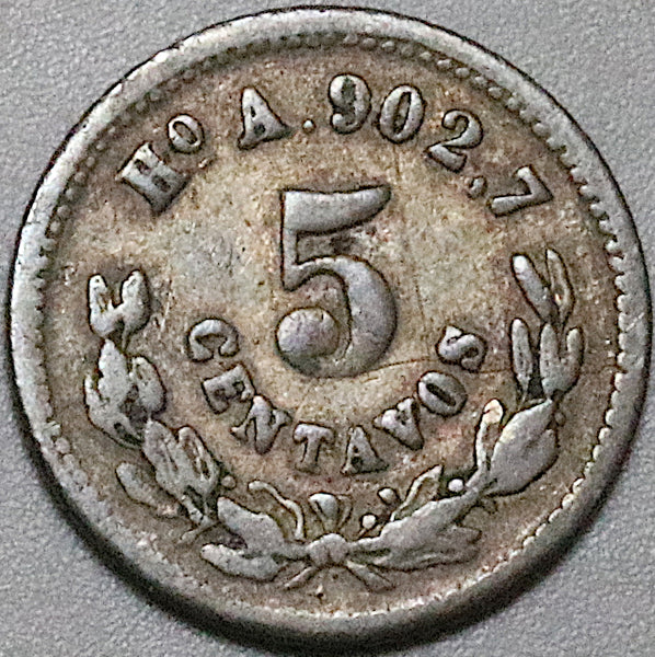 1880-Ho Mexico 5 Centavos Hermosillo VF Rare 43K Minted Mint Error Silver Coin (25061701R)