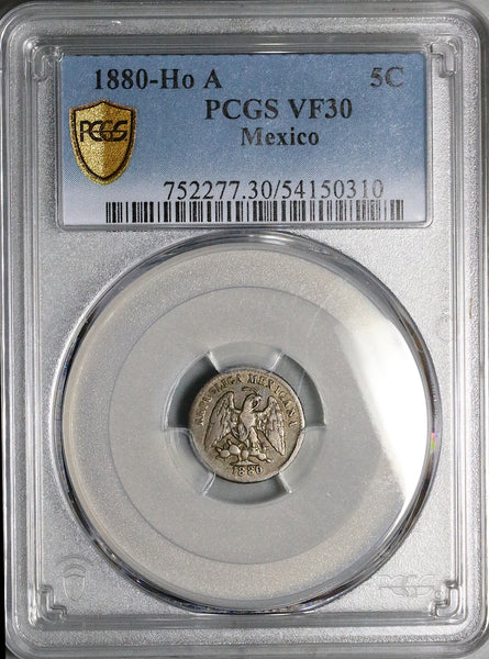 1880-Ho PCGS VF 30 Mexico 5 Centavos Hermosillo Rare 43K Silver Coin (25091402C)