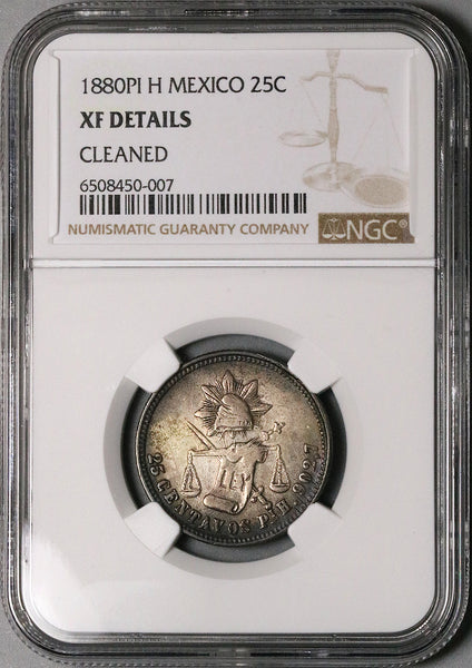 1880-Pi NGC XF Mexico 25 Centavos Potosi Mint Key Silver Coin (23072501C)