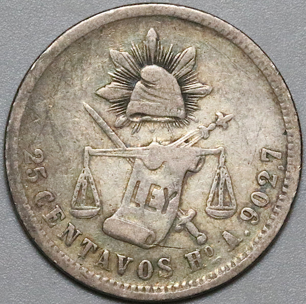 1881-Ho Mexico 25 Centavos VF Hermosillo Mint Rare 19K Silver Coin (23122805C)