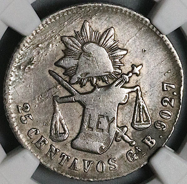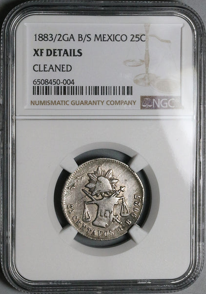 1883/2-Ga NGC XF Mexico 25 Centavos Guadalajara Rare Silver Coin (23092001C)