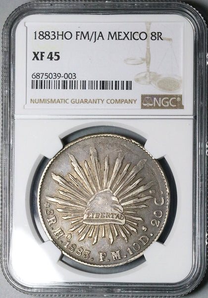 1883-Ho FM NGC XF 45 Mexico 8 Reales Hermosillo Mint Scarce Silver Coin (24040803C)