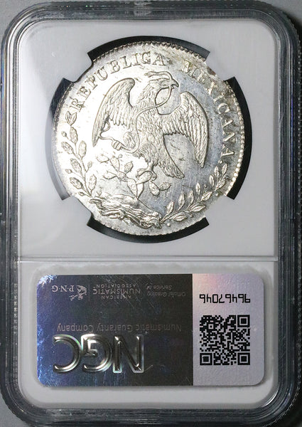 Near Gem Mint State Uncirculated Mexico silver 8 reales coin.