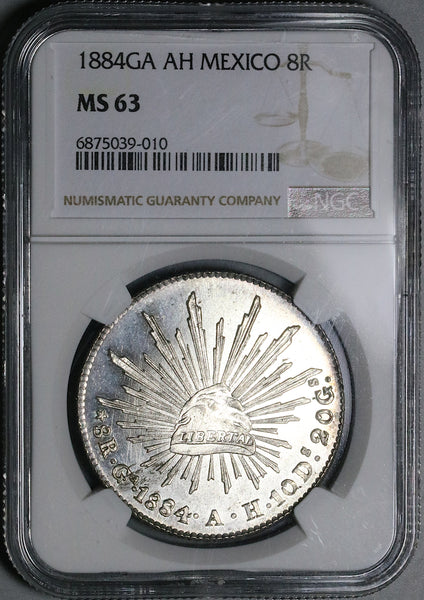 1884-Ga AH NGC MS 63 Mexico 8 Reales Guadalajara Mint State Silver Coin (24051501C)