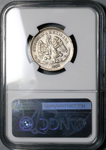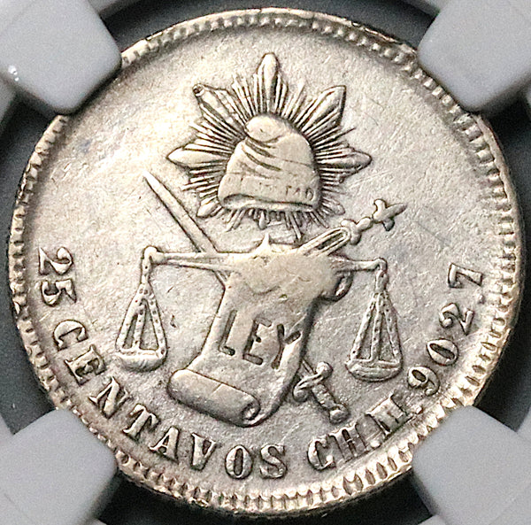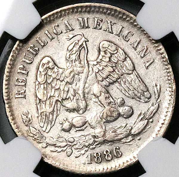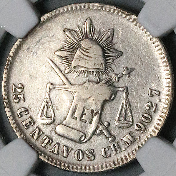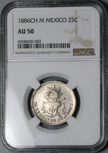 1886-CH NGC AU 50 Mexico 25 Centavos Chihuahua Mint 22k Silver Coin POP 1/0 (25020502C)