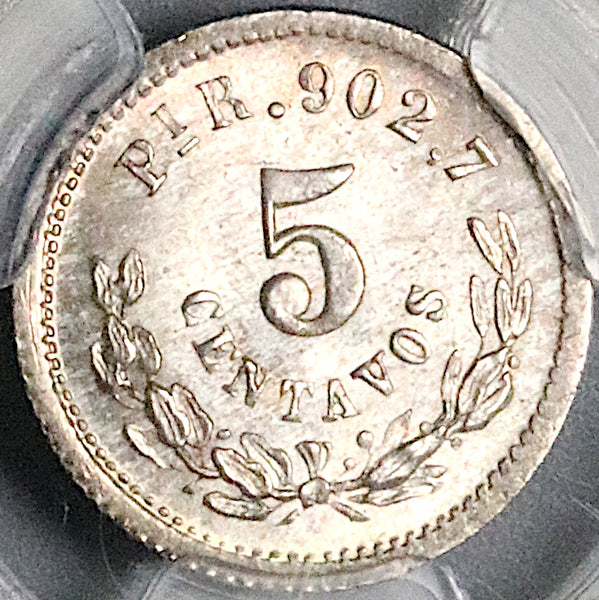 Gem Mint State Uncirculated Mexico silver 5 centavos coin.