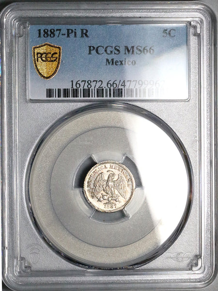1887-Pi PCGS MS 66 Mexico 5 Centavos GEM Silver Coin (24112702C)
