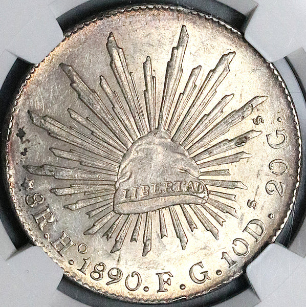 1890-Ho NGC MS 62 Mexico 8 Reales Hermosillo Mint State Very Scarce Silver Coin (23072301D)