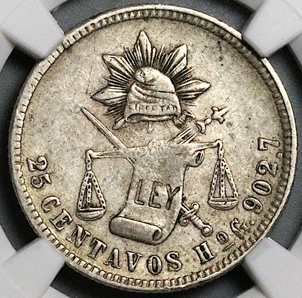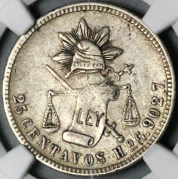 1890-Ho NGC XF 40 Mexico 25 Centavos Hermosillo Rare 18k Silver Coin POP 1/0 (24121005C)