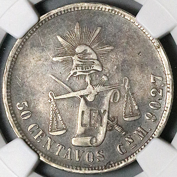 1892-Cn NGC XF 40 Mexico 50 Centavos Culiacan Mint 8k Silver Coin (23090503C)