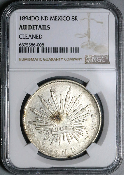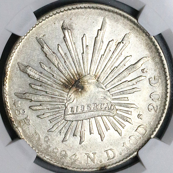 1894-Do NGC AU Mexico 8 Reales Durango Cap Rays Silver Coin (24042005C)