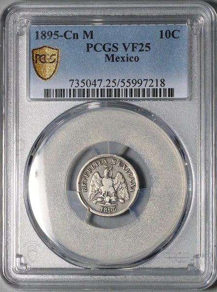 1895-Cn PCGS VF 25 Mexico 10 Centavos Culiacan Mint 23k Rare Silver Coin POP 1/0 (26010901C)