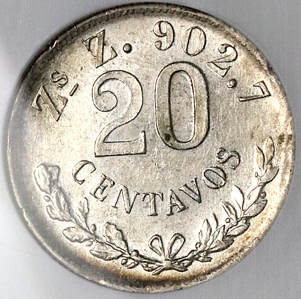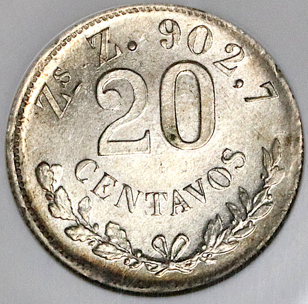 1898-Zs NGC MS 61 Mexico 20 Centavos Zacatecas Mint Silver Vintage Holder Coin (25042504C)