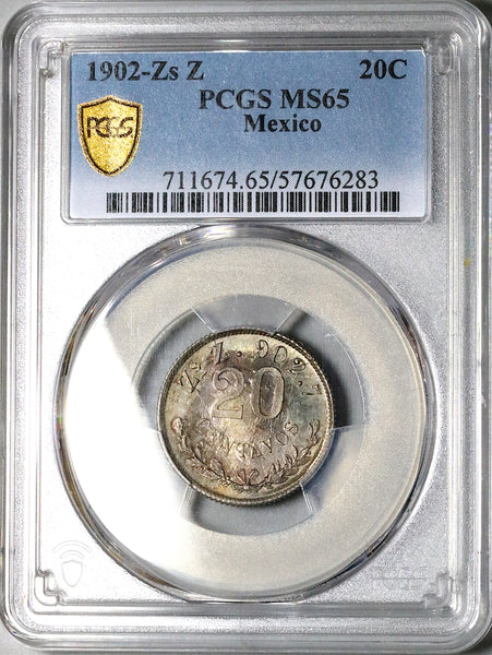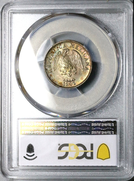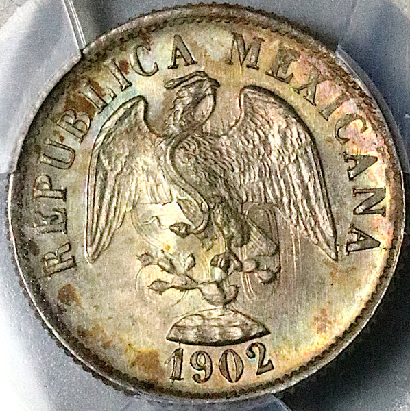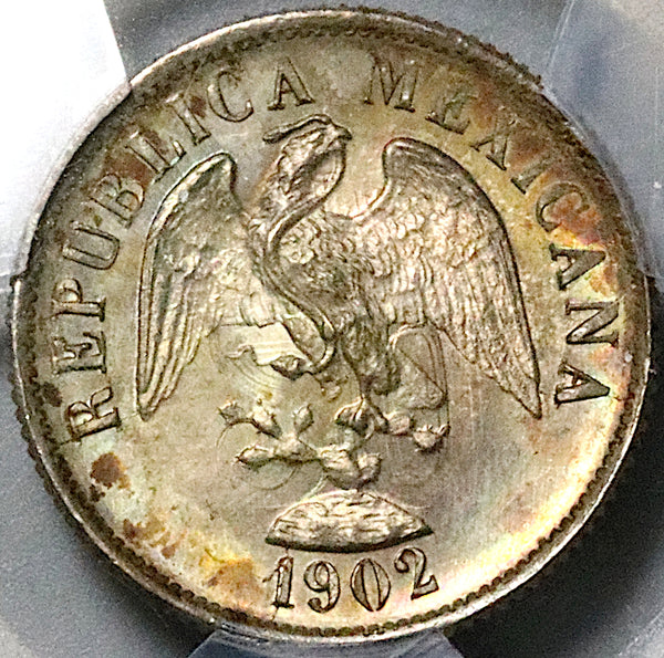 - Gem Mint State Uncirculated Mexico silver 20 centavos coin.