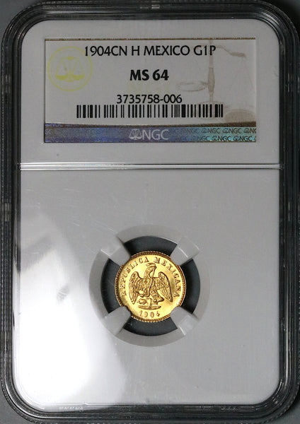 1904-Cn NGC MS 64 Mexico Gold 1 Peso Culiacan Mint State Coin (24030101C)