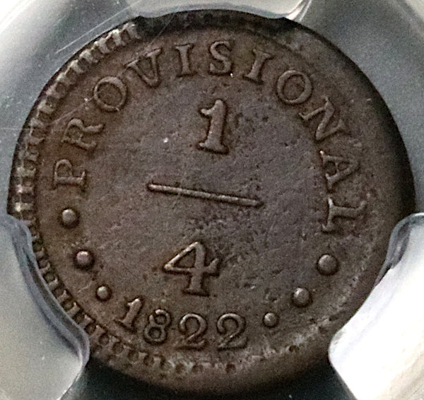 1822 PCGS VF 30 Peru 1/4 Radiant Sun Provisional Republican Coin POP 1/3 (26010802C)