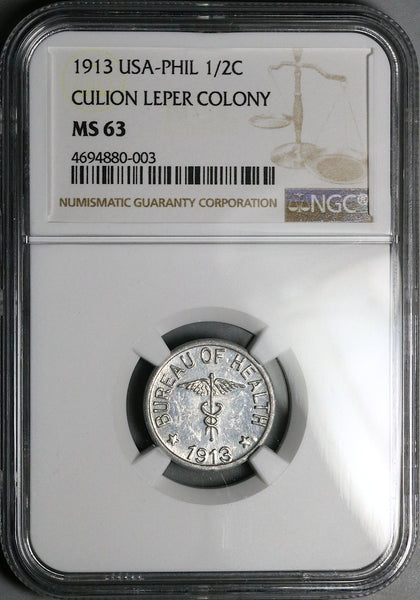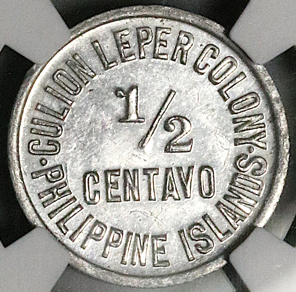 - Mint State Uncirculated Philippines Culion Leper Colony 1/2 centavo coin.
