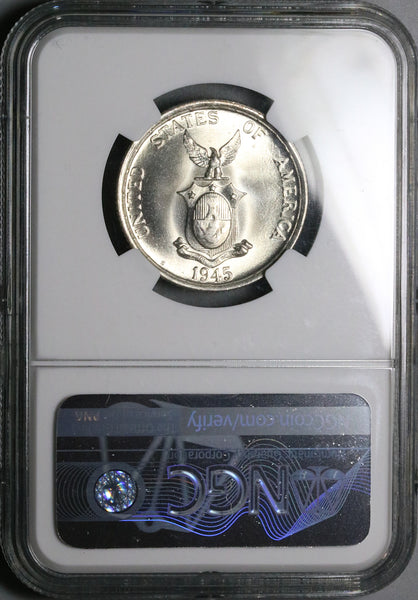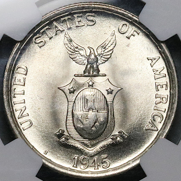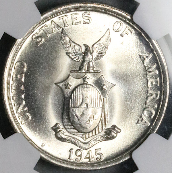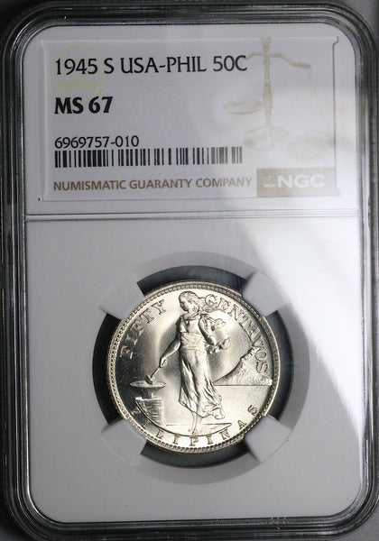1945-S NGC MS 67 Philippines Silver 50 Centavos GEM WWII USA Coin (25091101D)