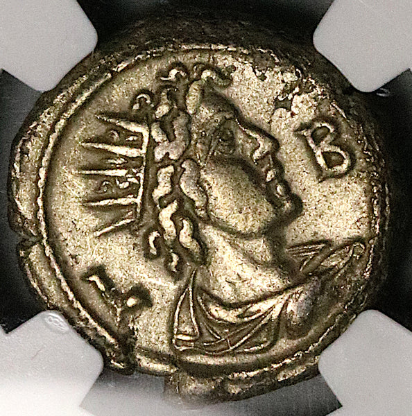 • Minted in the Emperor's 2nd regnal year, denoted by Greek letter B = 244/5 CE.