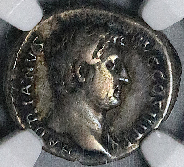 - RSC 805a, RIC 302v (drapery on far shoulder not listed), Foss 41 (attributed to 121 CE), approx 17 x 19mm.