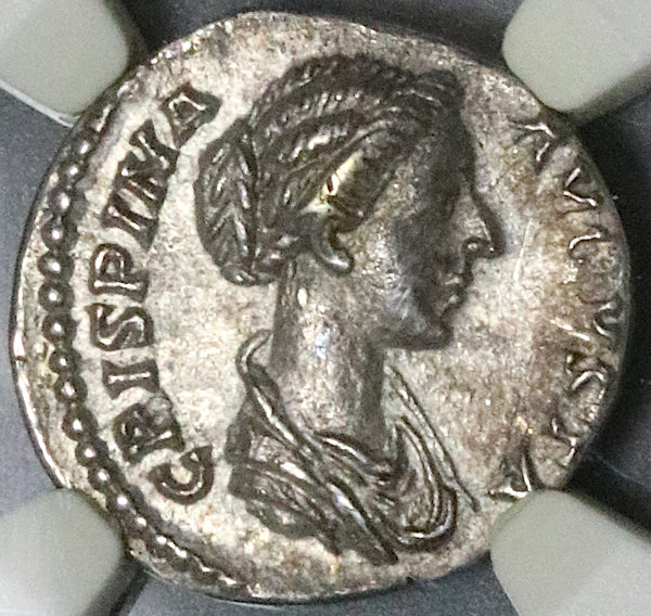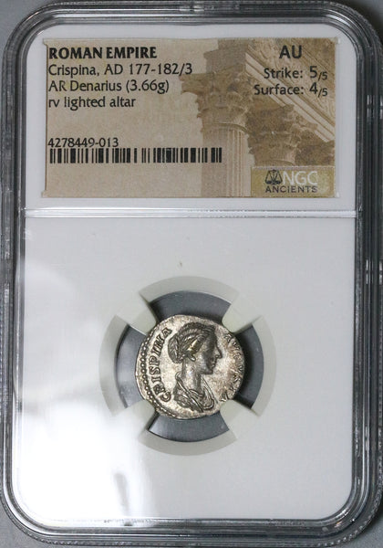 177 NGC AU Crispina Roman Empire Denarius Marriage Commodus Altar (23080201C)