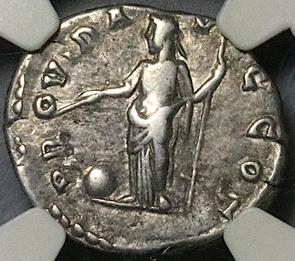 - Dated Roman Empire AR silver denarius coin.
