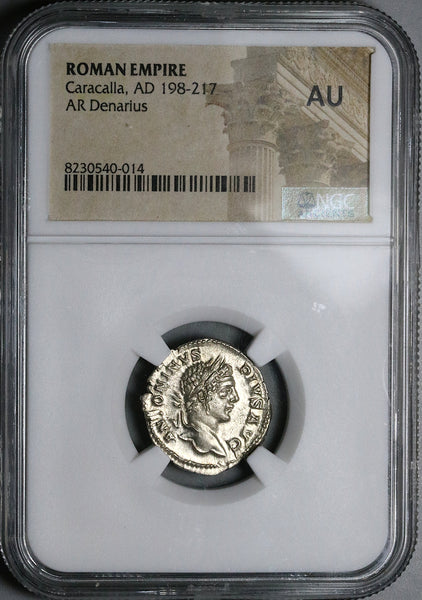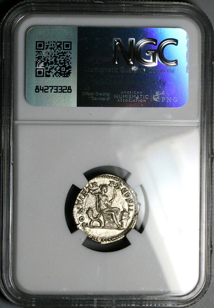 207 NGC AU Caracalla Roman Empire Denarius Securitas Throne Altar (25052802C)