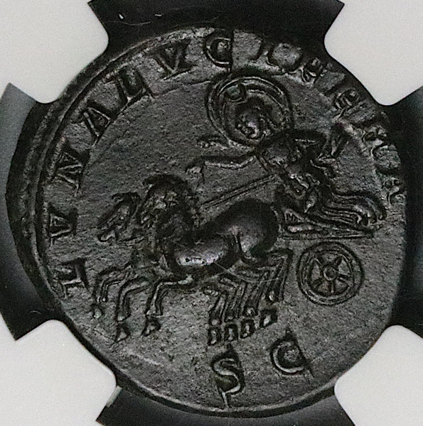 - Reverse: LVNA LVCIFERA S C, Luna in biga of horses galloping left, drapery billowing in semicircle behind head.
