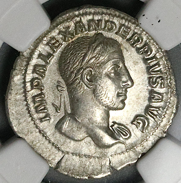 232 NGC AU Severus Alexander Denarius Roman Empire Annona Grain Supply (25052803C)