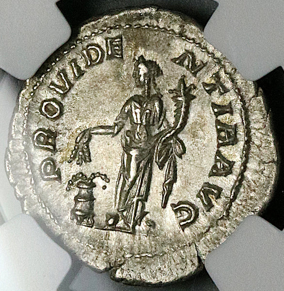 • Reverse: PROVIDENTIA AVG, Annona standing left hold grain ears and cornucopia, modius with grain overflowing at feet.