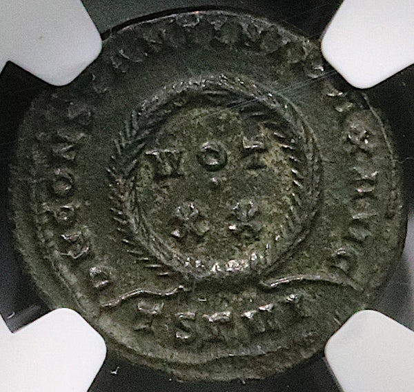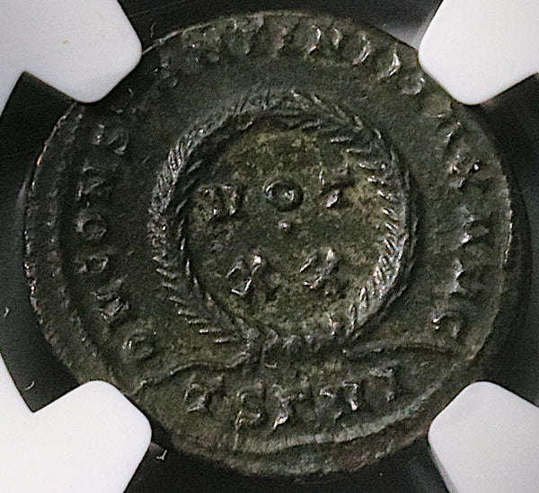 - Reverse: D N CONSTANTINI MAX AVG, wreath enclosing VOT / XX in two lines; TSΓVI in exergue.