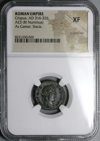 - Extremely Fine Caesar Crispus Roman Empire AE3 nummus or centenionalis coin.