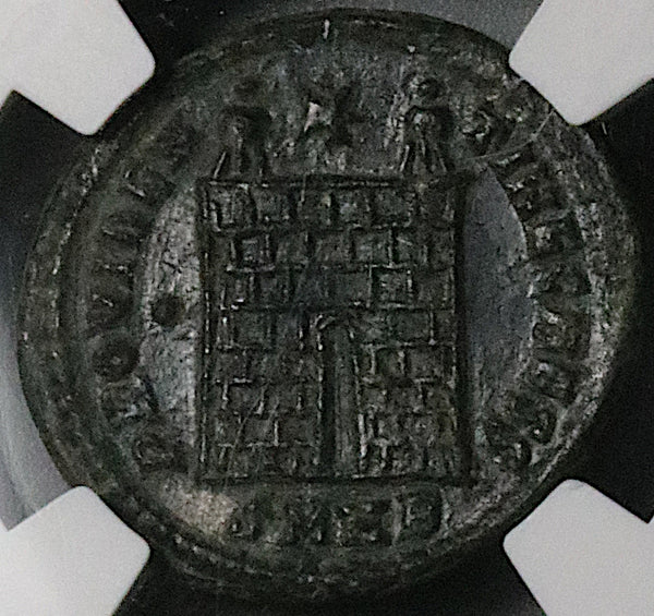 - Reverse: PROVIDENTIAE CAESS, camp gate with two turrets, no door, star above, star in reverse left field; SMHB in ex.