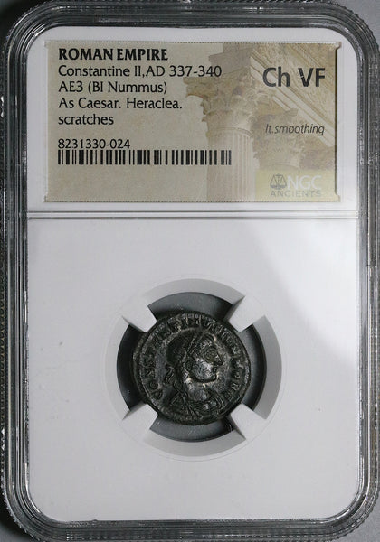 - Choice Very Fine Caesar Constantine II Roman Empire AE3 nummus or centenionalis coin.